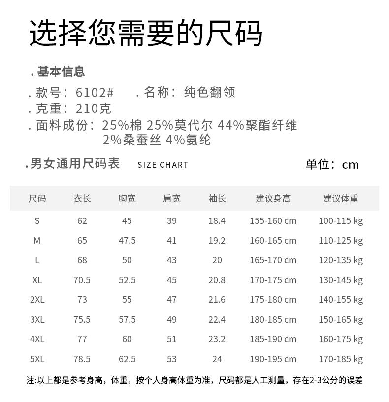 210g莫代尔蚕丝珠地短袖polo衫品质polo衫定制210g莫代尔棉珠地纯色翻领短袖POLO衫GJ29-6102