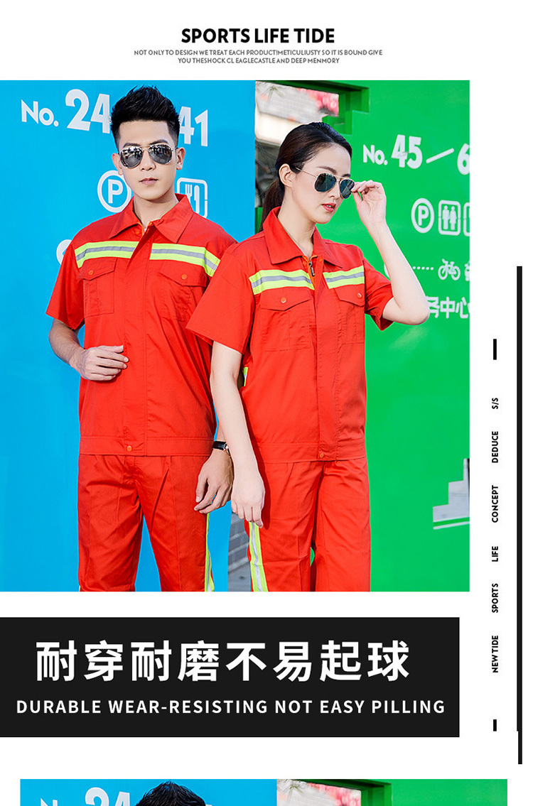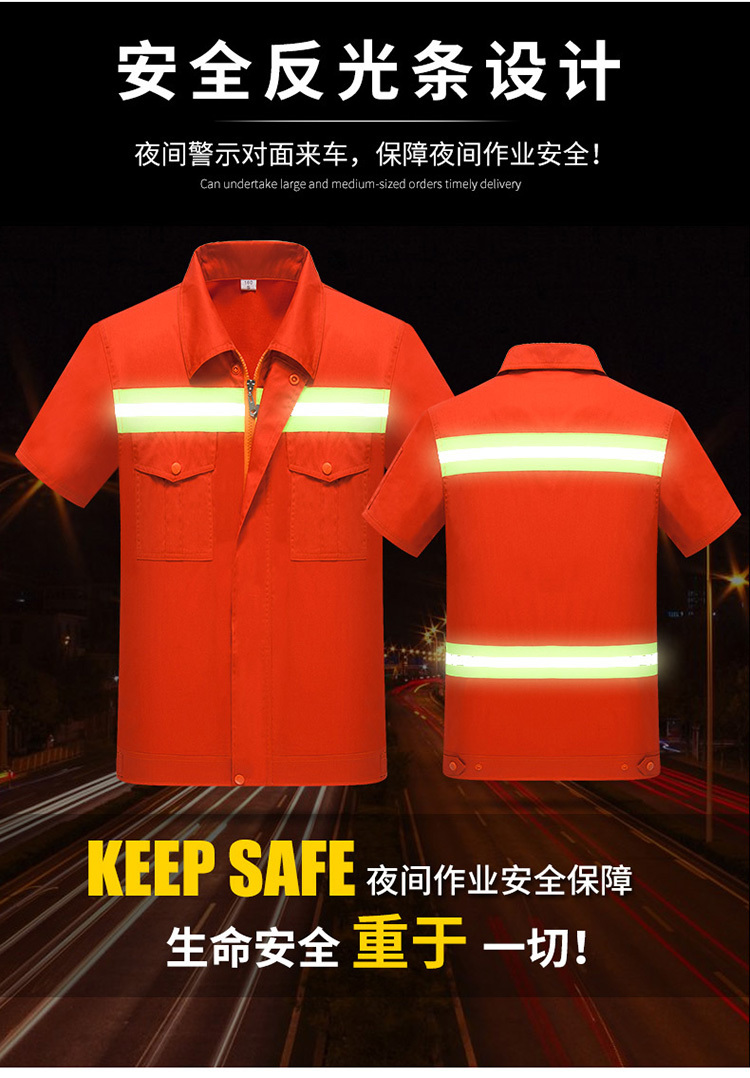 全工艺涤棉细斜纹春夏环卫绿反光条短袖套装工作服