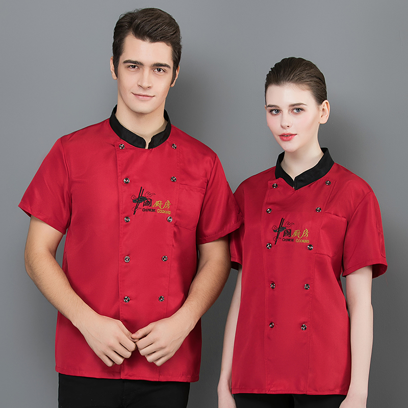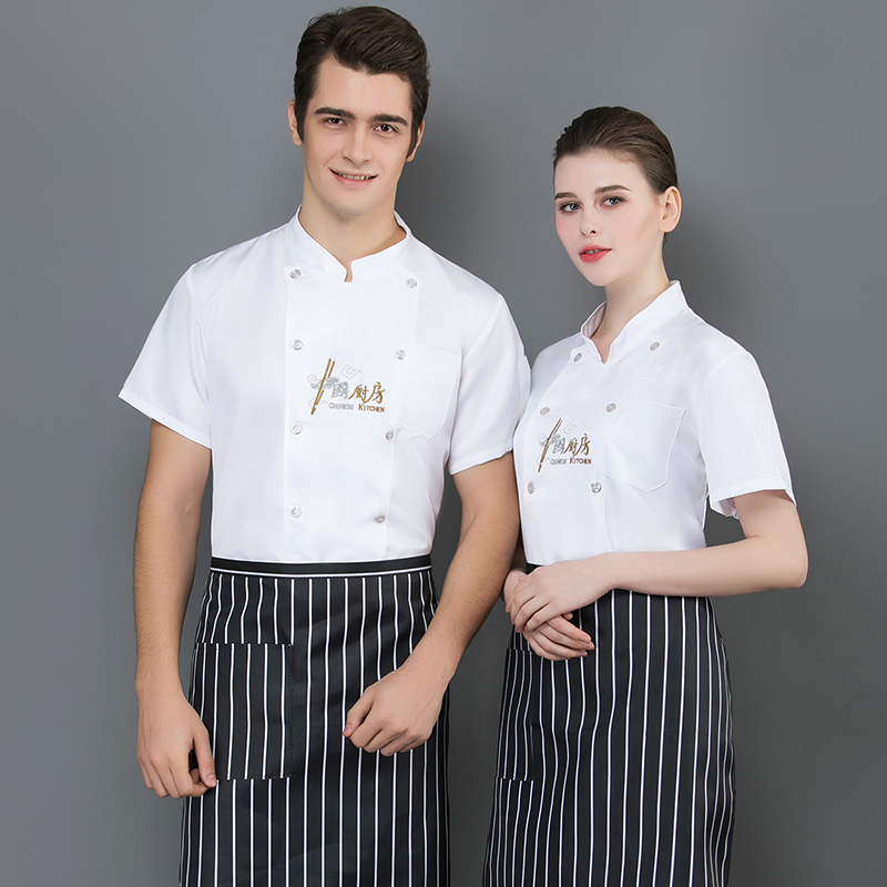 可绣印logo 夏季新款酒店餐厅饭店耐用短袖厨师服 厨师工作服