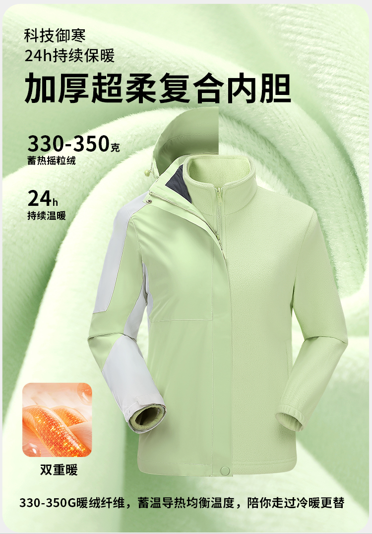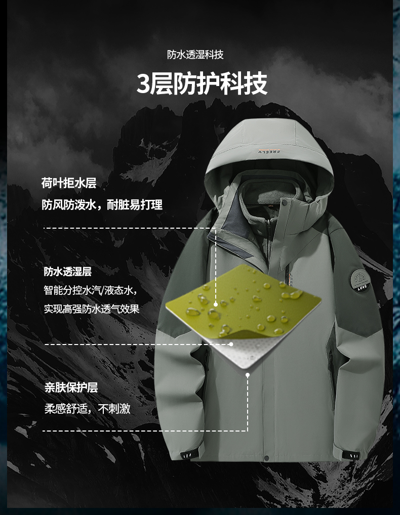 户外防风防水三合一可拆卸加绒厚冲锋衣V03-2299
