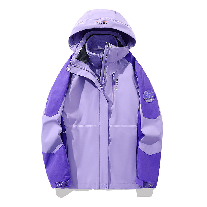 户外防风防水三合一可拆卸加绒厚冲锋衣V03-2299女款