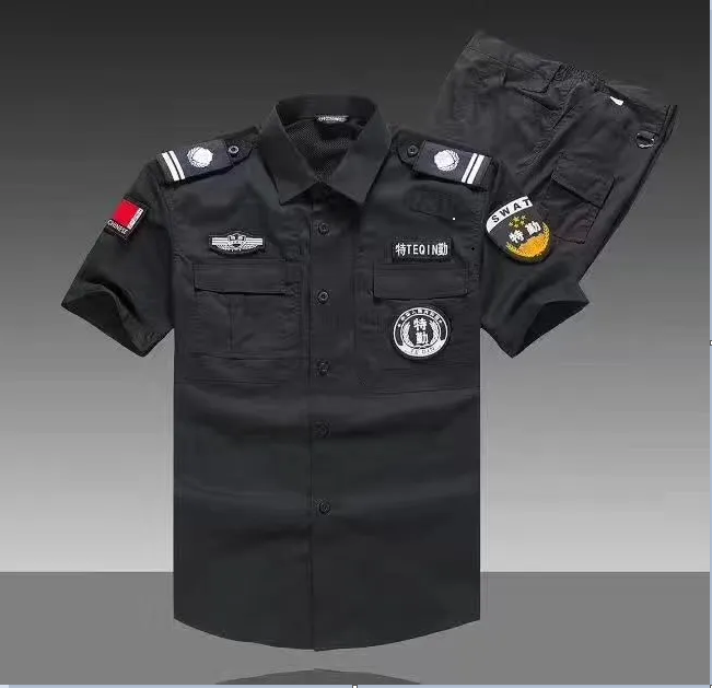 保安服直摆款夏季短袖套装男透气耐磨物业酒店门卫保安工作服户外作训服JCZXF003黑色(无配件)XL