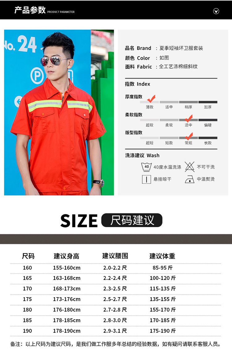 全工艺涤棉细斜纹春夏环卫绿反光条短袖套装工作服