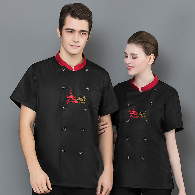 可绣印logo 夏季新款酒店餐厅饭店耐用短袖厨师服 厨师工作服